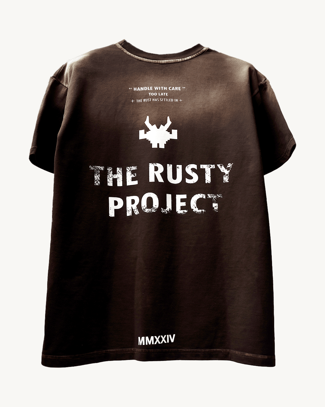 - Back – Displays our logo with the text “Handle with care – too late – the rust has settled in” and “The Rustee Project”